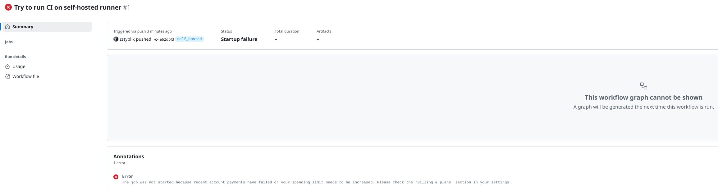 GitHub Action self-hosted runner fail